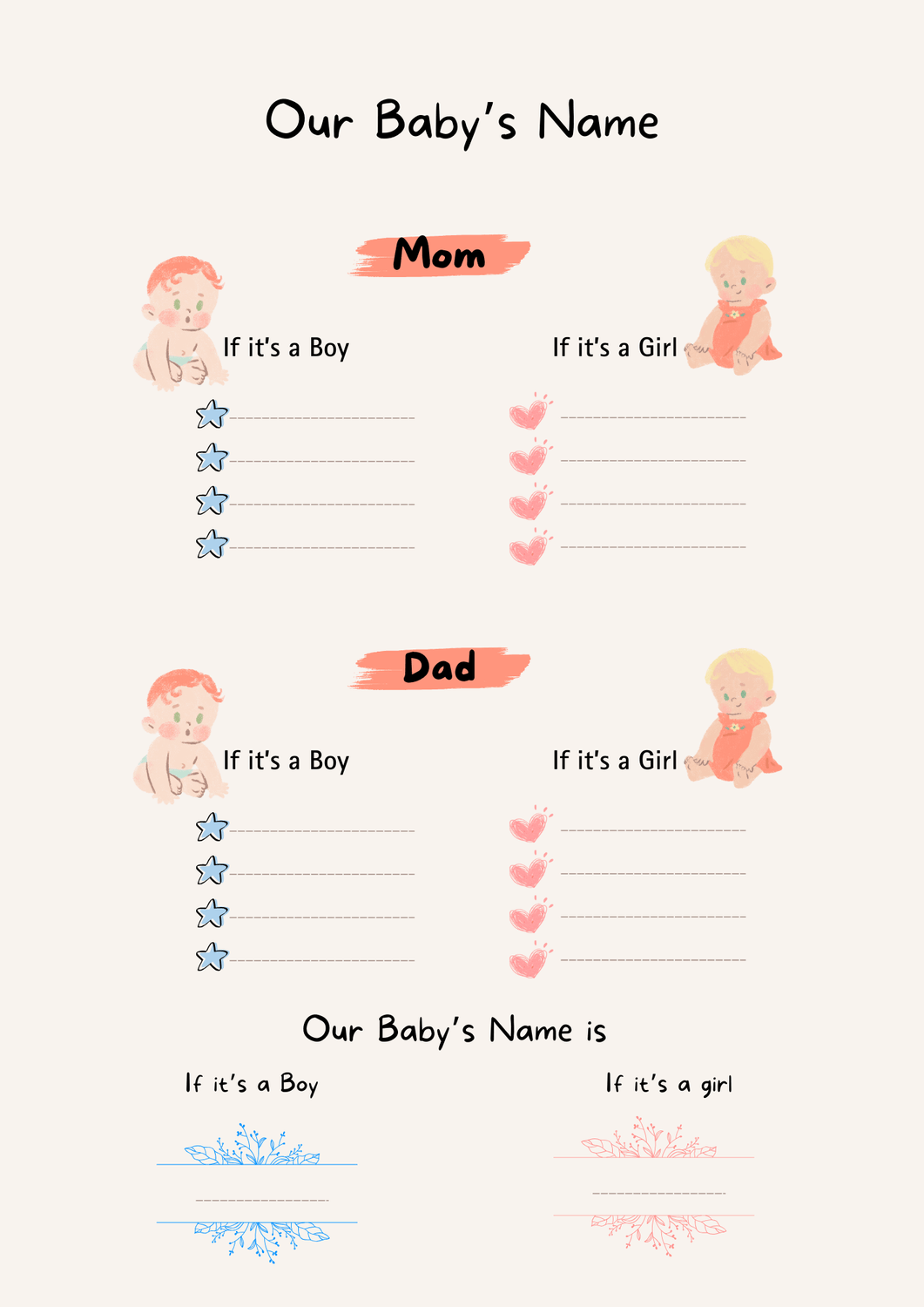 Pages for Name Ideas, Gender Reveal Memories & Letters to Baby: